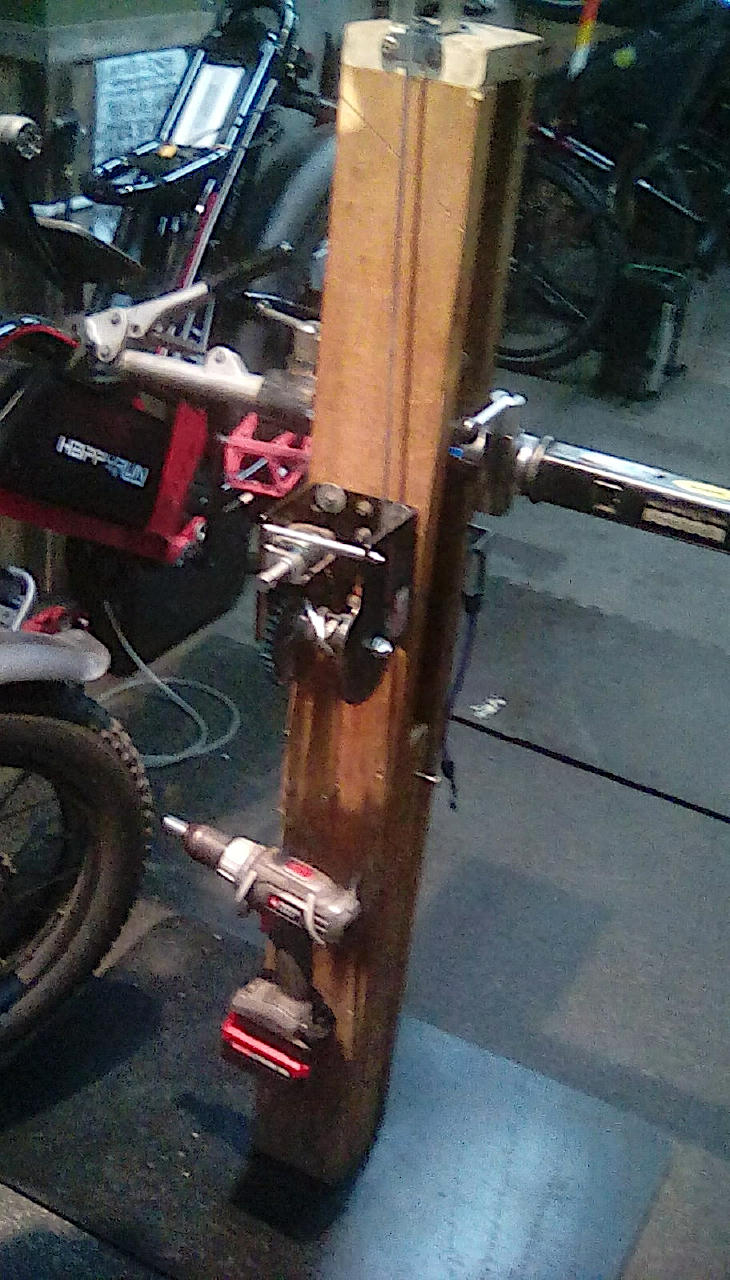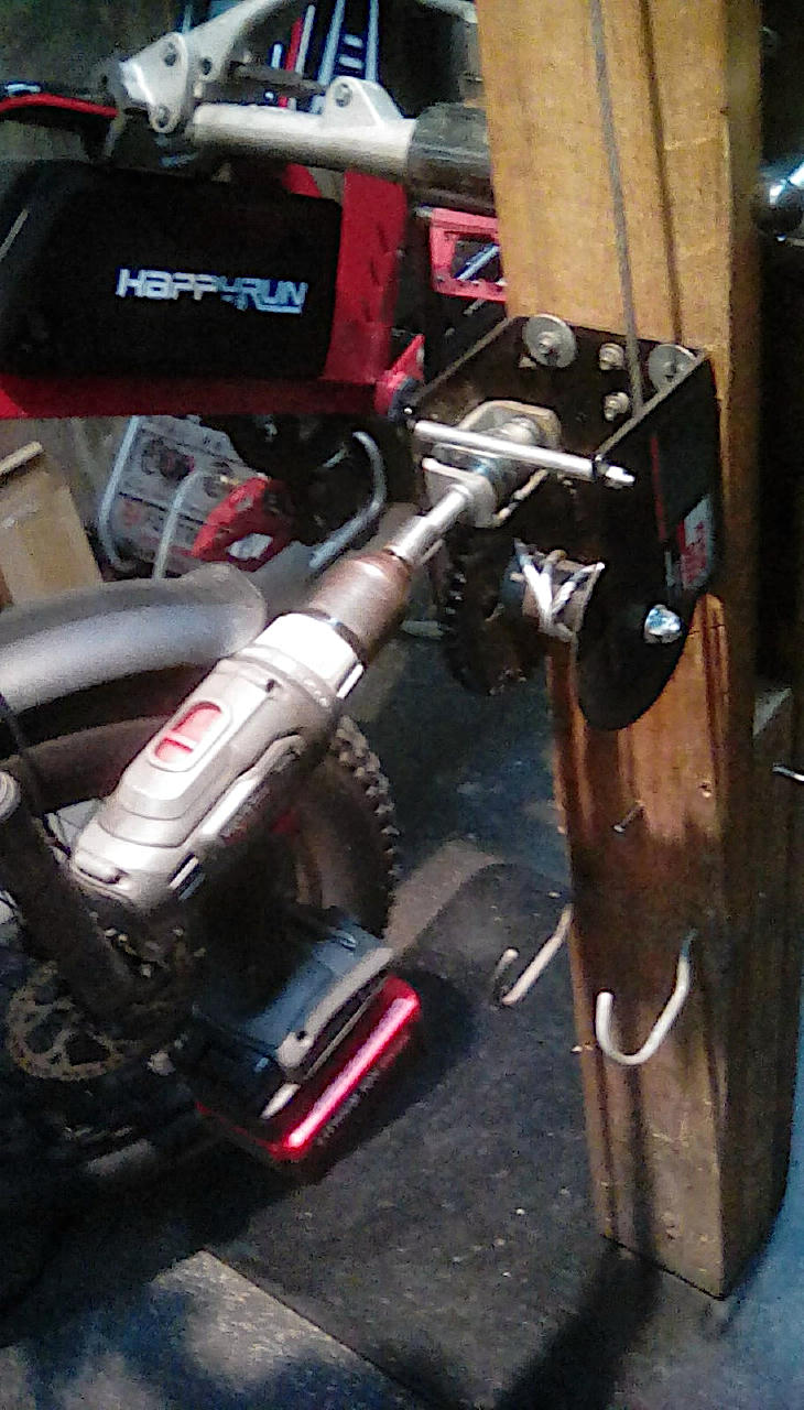 Here's a few newer pics of the modified workstand, with driver attached. The driver is just a cordless drill in low gear.