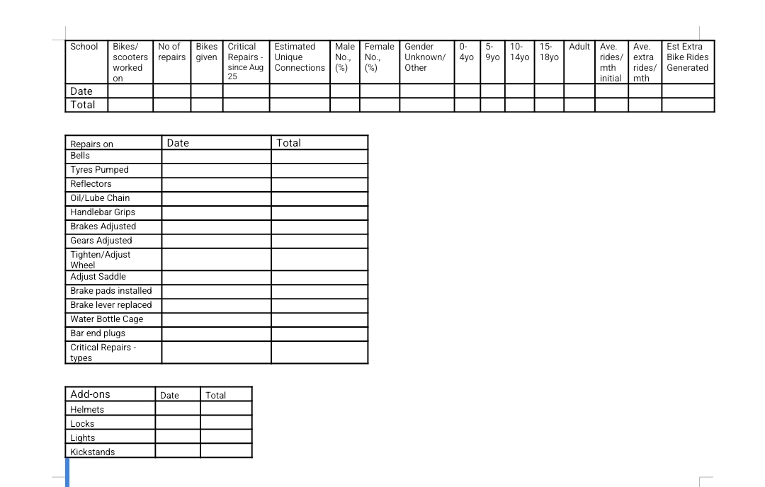 Tis' grant application season and we at the Street Collective are busy as elves begging Santa for decent wages and sanitary working conditions! Something that comes up regularly is that major donors want to see quantitative data about our impacts on the community as part of their grant application processes. We've talked about follow-up surveys, but I wanted to know if other organizations have tried to gather hard data about how bikes have helped their clients.